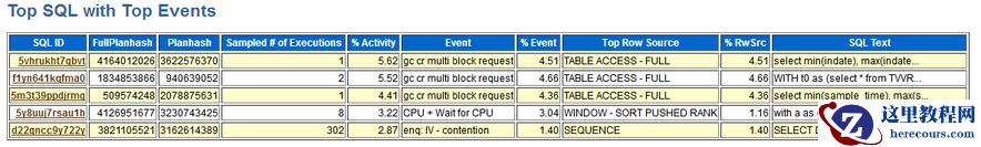 1)通过分别执行查询sql语句,收集awr、ash报告,查看top事件