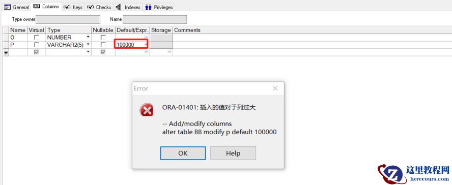 今天有朋友反馈有字段varchar2(5)可以默认为00000,于是自己测试了一下,果然可以建表语句:-- Create tablecreate table BB( o NUMBER not null, p VARCHAR2(5) default 000000 not null)tablespace HIP_DATA pctfree 10 initrans 1 maxtrans 255 storage ( initial 64K next 1M minextents 1 maxextents unlimited );-- Create/Recreate primary, unique and foreign key constraints alter table BB add constraint PK_BB primary key (O) using index tablespace HIP_DATA pctfree 10 initrans 2 maxtrans 255 storage ( initial 64K next 1M minextents 1 maxextents unlimited );