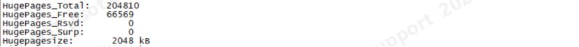 上述的启动日志可以看出,当前实例 SGA设置的内存为 400G,可用的内存分为两个部分,分别为 4k页内存和 2048k页的内存。其中 4k也的内存页分配了 34078751个,约为 130G, 2048k的内存页分配了 138241个,约为 270G。数据库进行 hugepage分配时,会预留至少 5个大页内存,所以实际分配的大页个数与设置的个数存在一定差异。通过操作系统层,也可以直接看出大页的使用情况。