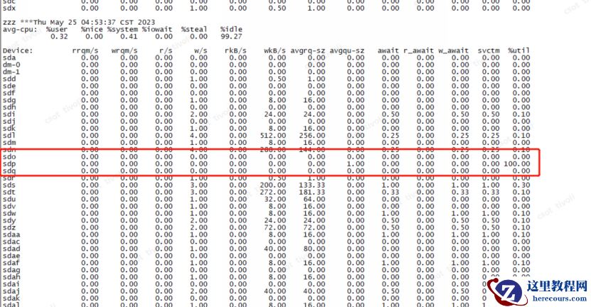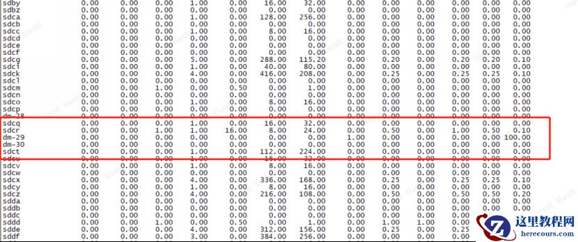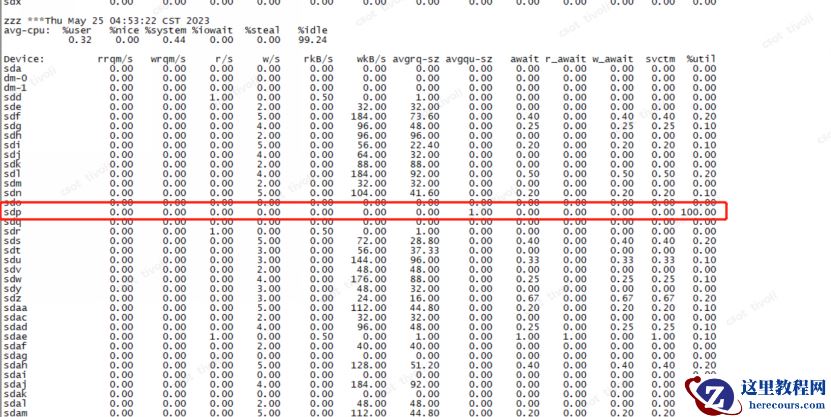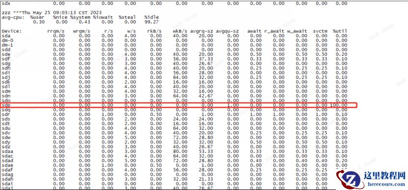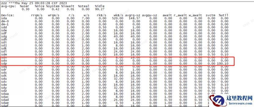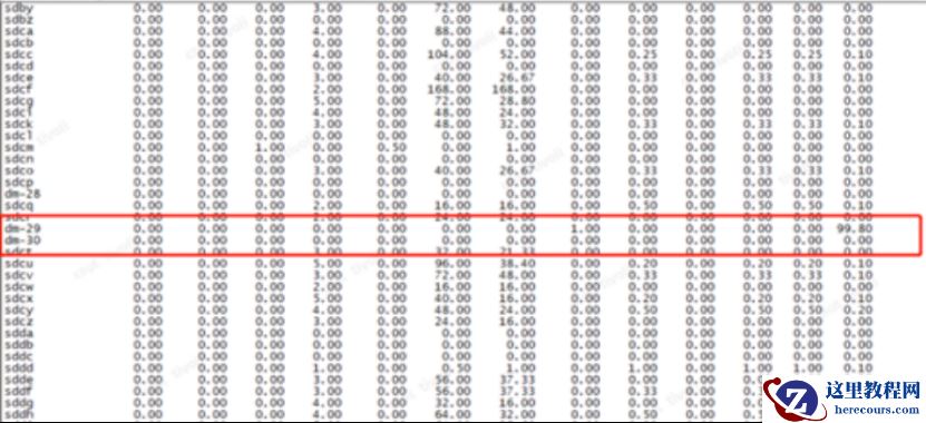 通过 osw对异常期间内磁盘io状态,发现s dp 和 dm -29 盘在性能故障期间繁忙程度为 1 00 %