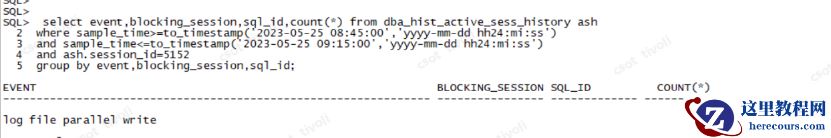 对 5 152 进程进行查询发现阻塞的事件为 log file parallel write