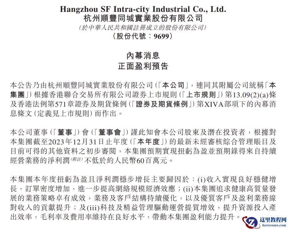 即时消费趋势增强,“万物到家即时可得”成为了消费新常态。这创造出不可忽视的场景潜力,也在无形中让龙头企业的发展质量走到突破点。 3月11日晚,“第三方即时配送第一股”顺丰同城发布公告称, 预期实现2023年全年盈利,且净利润不低于约人民币6000万元。这意味着顺丰同城继去年中期率先盈利后,再次成为行业第一家全年盈利的企业。对即配行业而言,这是一个重要的转折。因为在此前,亏损就像围绕在即配行业头顶的乌云,“规模不经济”问题长期存在。顺丰同城实现正向盈利突破,颇具里程碑意义。