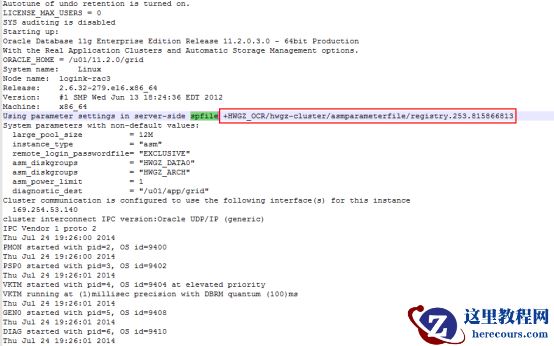 检查最近一次ASM实例启动信息: