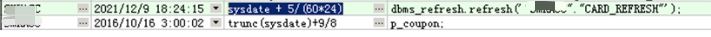 怀疑ZX_CARD_BASEINFO存在于CARD_REFRESH刷新组中。 4.查看刷新组信息 select owner,name,rowner,rname,job from dba_refresh_children;
