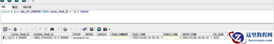再次查询 dba_2pc_pending 视图