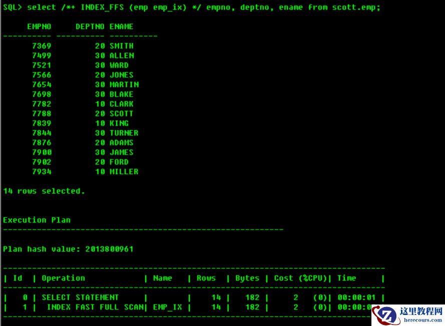 理解“为什么我的索引没有被使用?”这是一个相对广泛的话题,其中从简单的无索引到SQL执行计划及数据发布等原因导致,因此不使用索引有很多不同的原因,下面我们将跟踪Oracle官方文档的介绍逐一进行介绍:一 检查表的创建是否索引1.检查您认为应该通过索引访问的表是否确实在其上定义了索引。索引可能被删除或创建失败——例如,在导入表或执行加载之后,可能由于错误(软件或人为)而没有创建索引。下面的查询显示了检查索引的示例:SELECT index_name FROM user_indexes WHERE owner="&Table_Owner" and table_name = "&Table_Name";2.为什么要使用索引?Oracle并不仅仅因为索引存在就必须使用索引。如果查询需要查询表中的每一行(例如,在表连接中),那么为什么要查 询索引中的所有行和表中的所有行呢?在这种情况下,忽略索引可以获得更好的性能。优化器根据各种访问方法(包括 索引)对所有查询的适用性的统计信息做出决策,并选择最优方法二 从索引自身找原因1.在查询(谓词列表)的where子句中,索引的索引列是否为单个表(非连接)where条件中谓词提供? 如果没有,那么需要在查询中使用索引至少需要是谓词列表中索引的第一列(对于跳过扫描请在下面的学习中进行了解)。示例:您在单列EMP.EMPNO上定义了索引EMPNO_I1,并定义了连接索引EMPNO_DEPT_I2对列EMP.EMPNO和EMP.DEPT (EMP.EMPNO是第一列)。为了让优化器考虑任何一个索引,我们必须在谓词列表(WHERE子句)中使用列EMP.EMPNO:SELECT ename, sal, deptno FROM emp WHERE empno<100;2.例外情况处理:2.1.CBO优化器可以使用索引快速全扫描(INDEX_FFS),只要索引包含查询所需的所有列,并且索引键中至少有一个列具有NOT NULL约束。执行INDEX_FFS并不需要索引的前导列。注意,使用INDEX_FFS并不一定返回已排序的行。排序取决于读取索引块的顺序,并且只有在使用'order by'子句时才能保证以排序的顺序返回行。如下的:a. (1).在Oracle中的表数据没有默认的排序。所以如果没有指定排序,那么数据将按照在检索数据的对象中找到的顺序返回。预先排序的数据源(如索引)将返回排序的数据,但未排序的数据将返回未排序的数据(如全表扫描)。如果SQL发现查询的访问路径发生了变化,那么数据返回的顺序可能与以前不同。Oracle为了保证行顺序的ONLY方法是在语句中提供order by子句。 (2).在一些查询中,有2个参数可能会影响顺序,它们是: _newsort_enabled -该参数允许使用新的排序算法。 _gby_hash_aggregation_enabled—该参数允许group by子句使用散列聚合而不是排序。由于散列聚合不能保证返回数据的顺序,因此这可能会改变数据的顺序 上述两个参数的设置对排序的任何影响都是true或者false,设置它们将导致使用不同的排序代码。这个排序代码的目的纯粹是与性能相关的。顺序上的任何变化都是巧合。 (3).如下的情况将优先使用指数FFS而不是FTS a.索引必须包含查询中引用的所有列。 b.索引FFS仅适用于基于成本的优化器(CBO)(索引提示强制CBO)。 c.索引FFS可以用/*+ INDEX_FFS() */来暗示。如下实例:创建索引