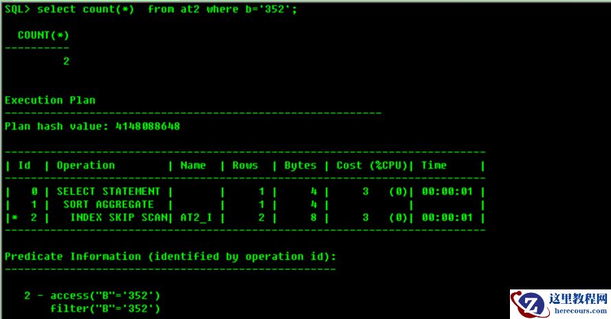 2.2.CBO优化器可以使用索引跳过扫描(INDEX_SS)。执行INDEX_SS不需要索引的前导列: 索引跳跃扫描改进了对非前缀列的索引扫描,因为扫描索引块通常比扫描表数据块更快。非前缀索引是指不包含作为第一列的键列的索引。 如果将前缀索引想象成类似于分区表,这个概念就更容易理解了。在分区对象中,分区键(在本例中为前导列)定义了存储在哪个分区中的数据。在索引的情况下,每个键(前缀列)下的每一行都将按照该键排序。因此,在前缀索引的跳跃扫描中,前缀值被跳过,非前缀列作为逻辑子索引访问。后继列在前缀列中排序,因此可以忽略前缀进行“正常”的索引访问。 在这种情况下,复合索引逻辑上被分割成更小的子索引。逻辑子索引的数量取决于初始列的基数。因此,即使在where子句中没有使用前导列,也可以使用索引。如下是案例: