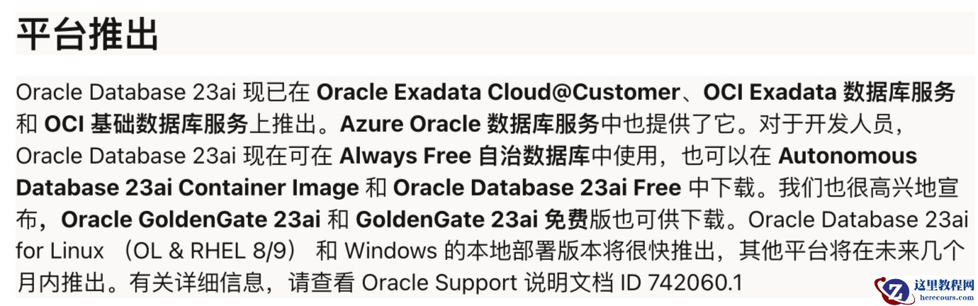 更多内容参考Oracle官网 https://blogs.oracle.com/database/post/oracle-23ai-now-generally-available