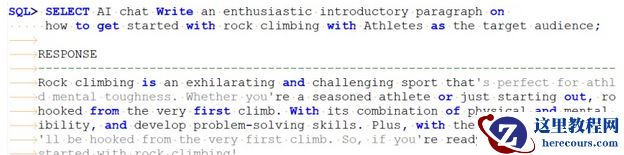 SQL> SELECT AI chat Write an enthusiastic introductory paragraph on how to get started with rock climbing with Athletes as the target audience;