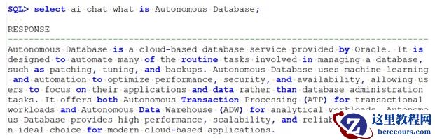 用自然语言解释底层SQL命令的输出,语法:“select ai narrate自然语言”。