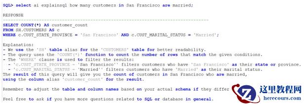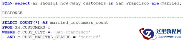 SQL> select ai explainsql how many customers in San Francisco are married;