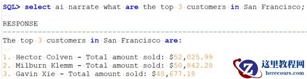 SQL> select ai narrate what are the top 3 customers in San Francisco;