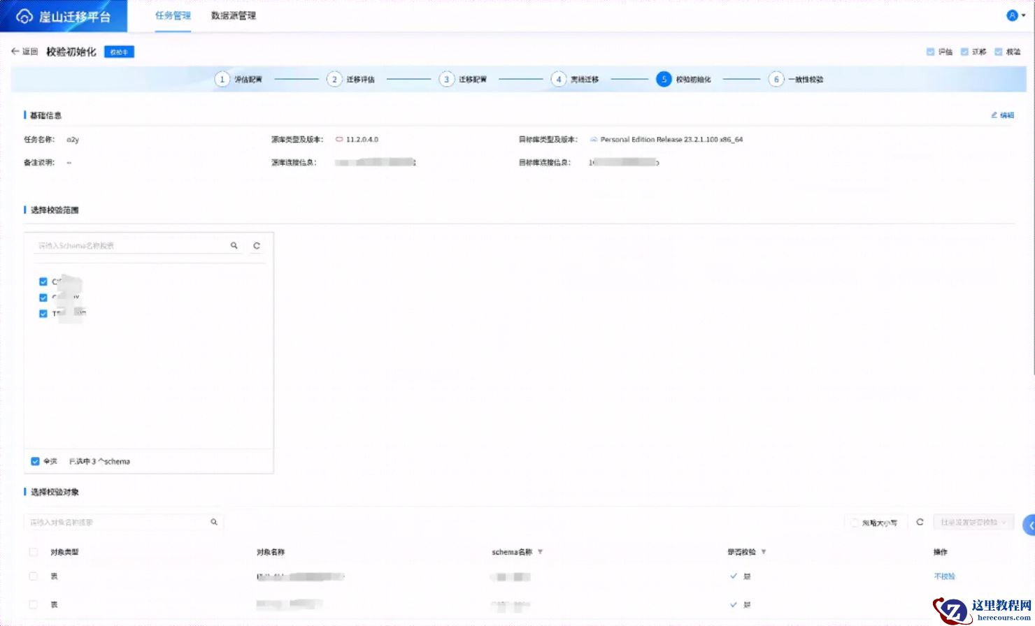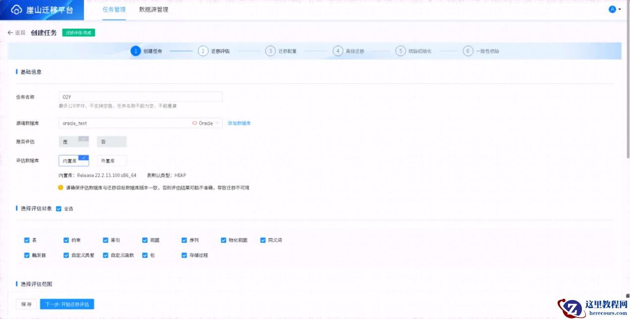创建迁移任务,选择上一步添加的Oracle数据源,选择要【迁移评估】的用户和对象。