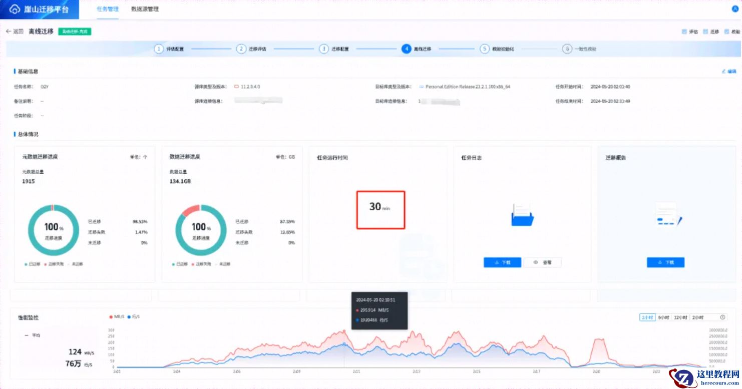 本次迁移数据134.1G,迁移时间总共耗时30分钟,迁移的速度还是蛮快的!