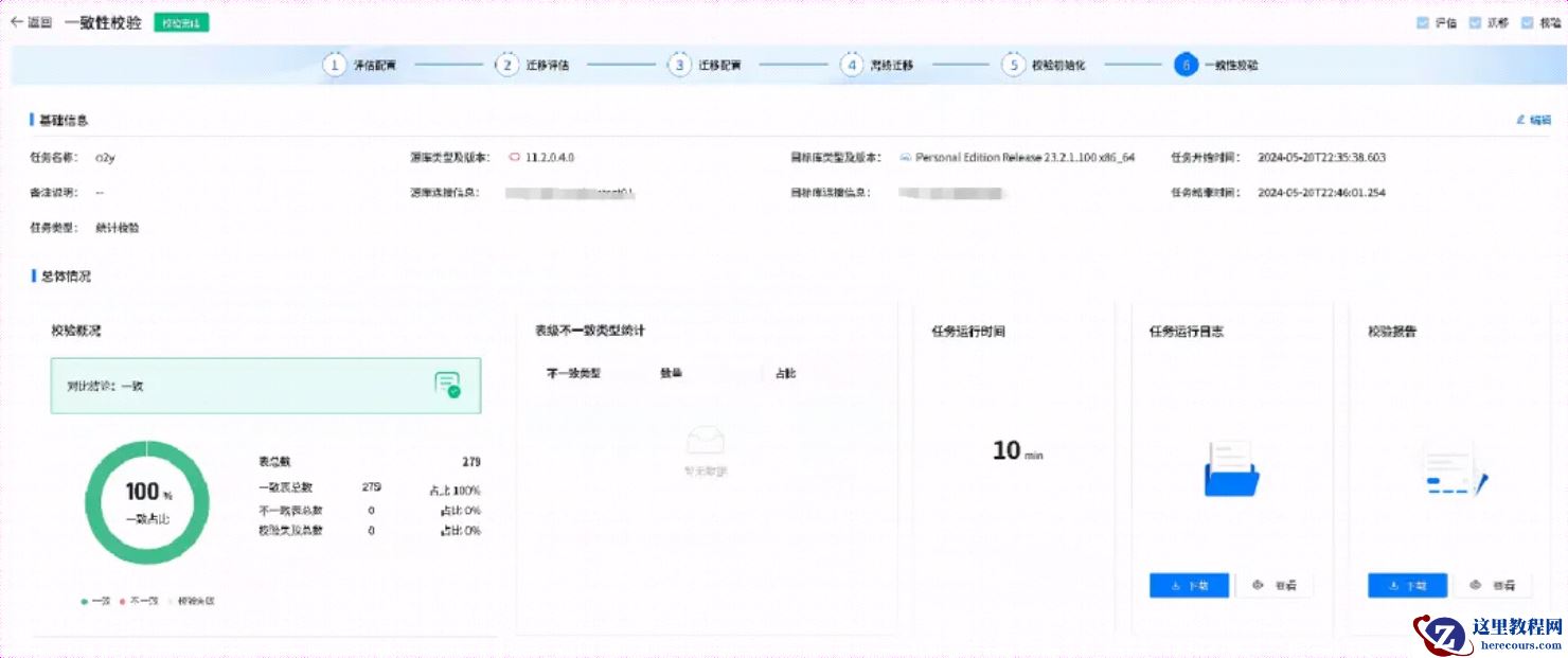 选择统计对比校验,执行【一致性校验】,得到如下报告结果。