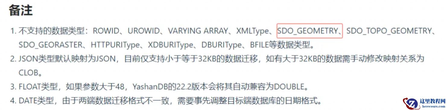 YashanDB官网备注说明,链接地址: https://doc.yashandb.com/ymp/23.1/zh/参考说明/数据类型映射规则/Oracle数据类型映射.html