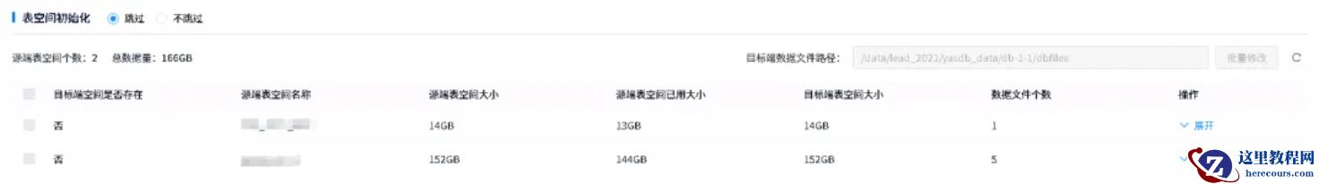 注意:选择”跳过“的话,需要提前在目标端创建好表空间。