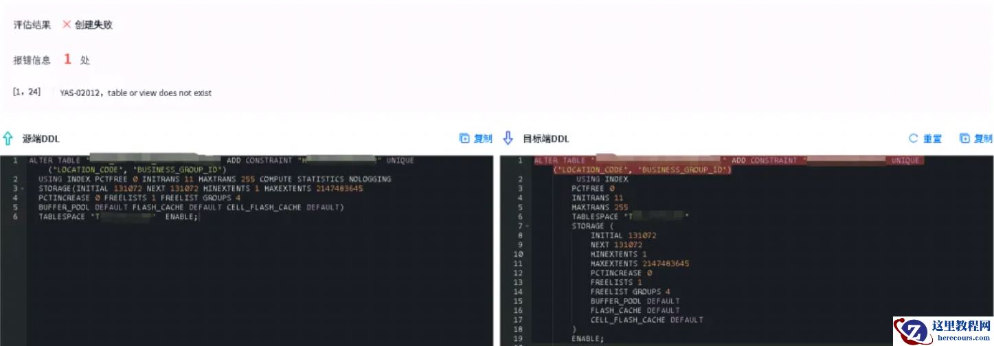迁移评估过程中遇到表或视图不存在的问题,经定位分析,失败的原因是由于包含有SDO_GEOMETRY数据类型的表没有创建成功。解决办法是暂时先忽略这些索引对象。
