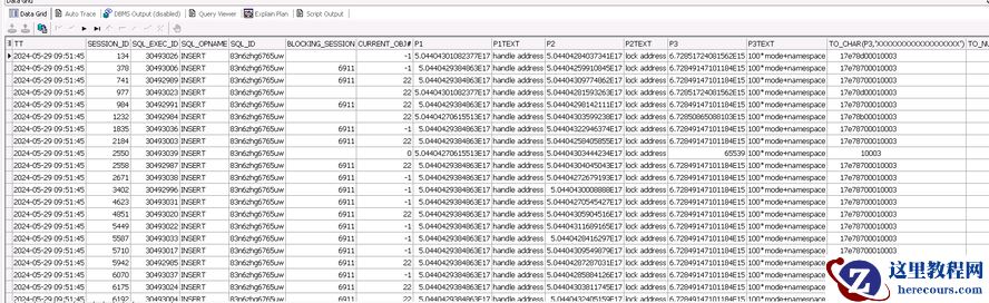 通过对 library cache lock会话的6个blocking_session进行分析,发现基本上blocking session的语句也都是同样的insert 语句。