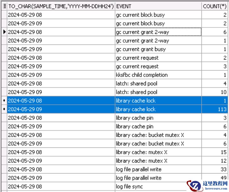 比对了 8点和9点的异常等待,主要差异是9点异常等待library cache lock 从1增加到113,其他等待区别不大,不用做重点关注。
