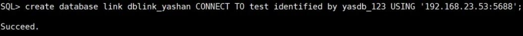 SQL> create database link dblink_yashan CONNECT TO test identified by yasdb_123 USING '192.168.23.53:5688';