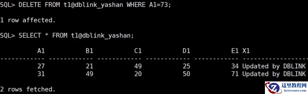 SQL> DELETE FROM t1@dblink_yashan WHERE A1=73; SQL> SELECT * FROM t1@dblink_yashan;