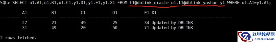 SQL> SELECT o1.A1,o1.B1,o1.C1,y1.D1,y1.E1,y1.X1 FROM t1@dblink_oracle o1,t1@dblink_yashan y1 WHERE o1.A1=y1.A1;