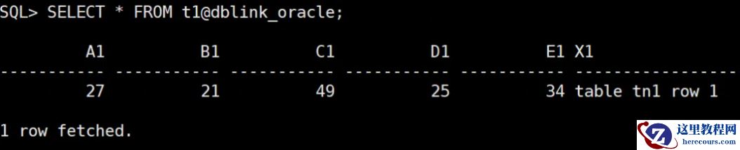 6、通过指向Oracle实例的DBLink查询Oracle实例T1表中的数据