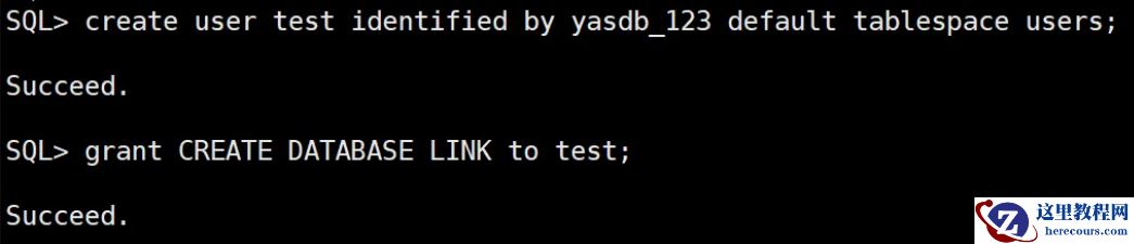 SQL create user test identified by yasdb_123 default tablespace users; grant CREATE DATABASE LINK to test;