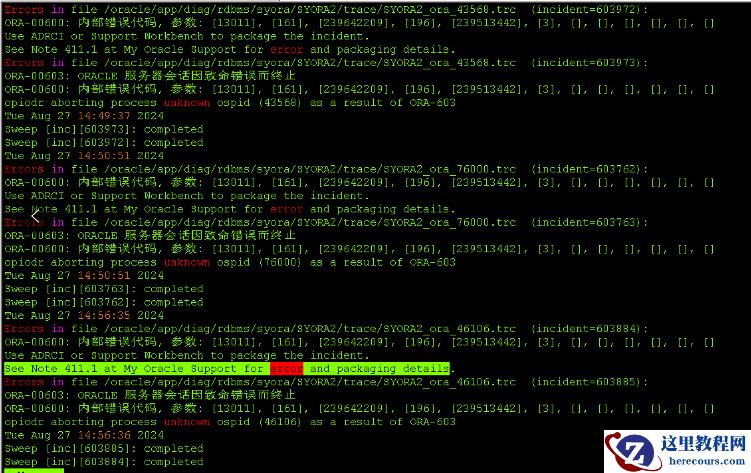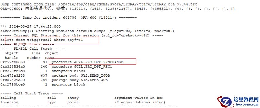 查看导出dump文件Dump file /oracle/app/diag/rdbms/syora/SYORA2/incident/incdir_603756/SYORA2_ora_99344_i603756.trc