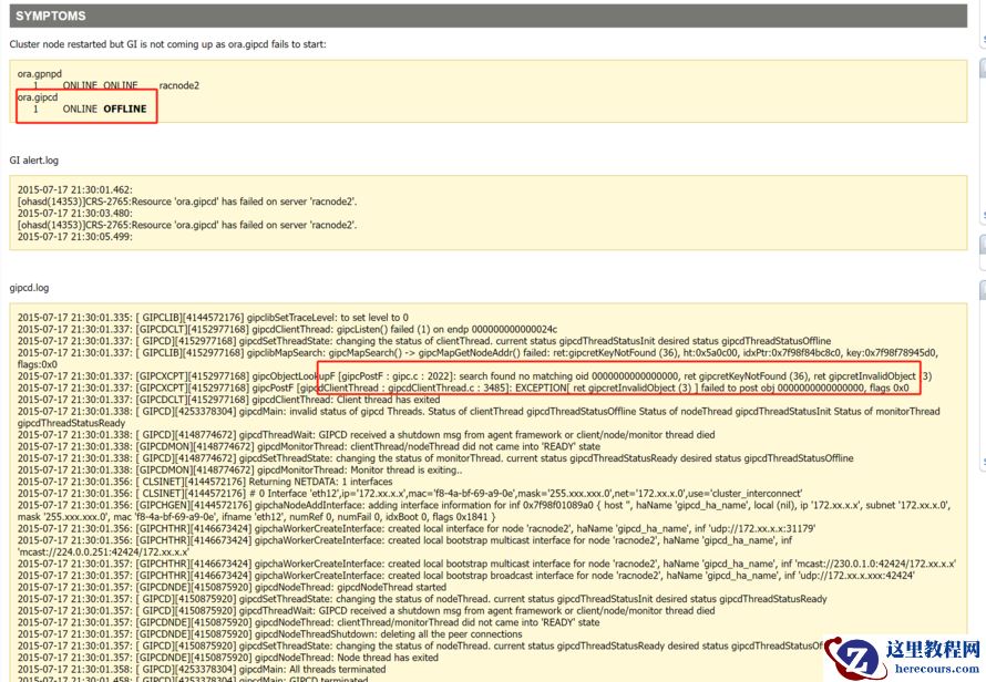 - rac集群二几点重启ora.gipcd不能正常启动
