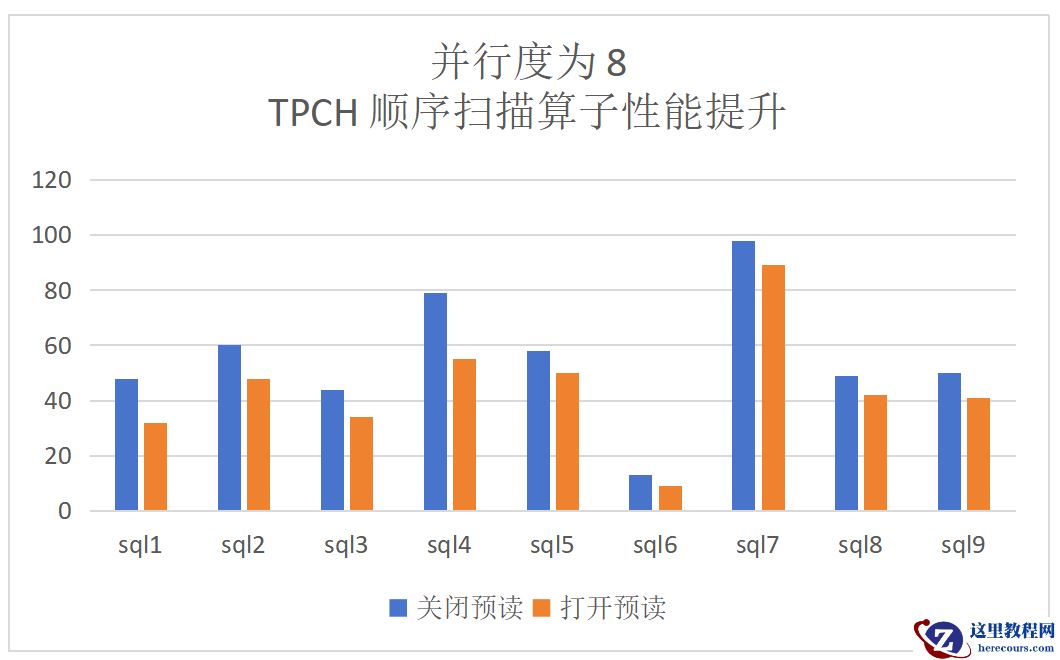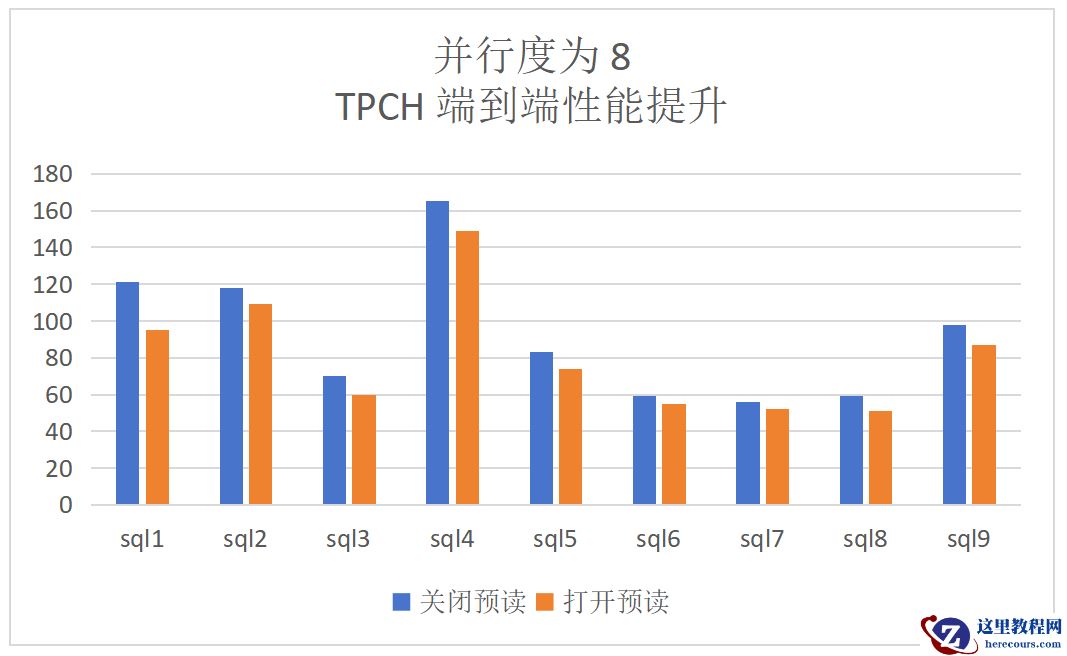 dop=8:TPCH顺序扫描算子提升为28%,端到端的提升为13%:
