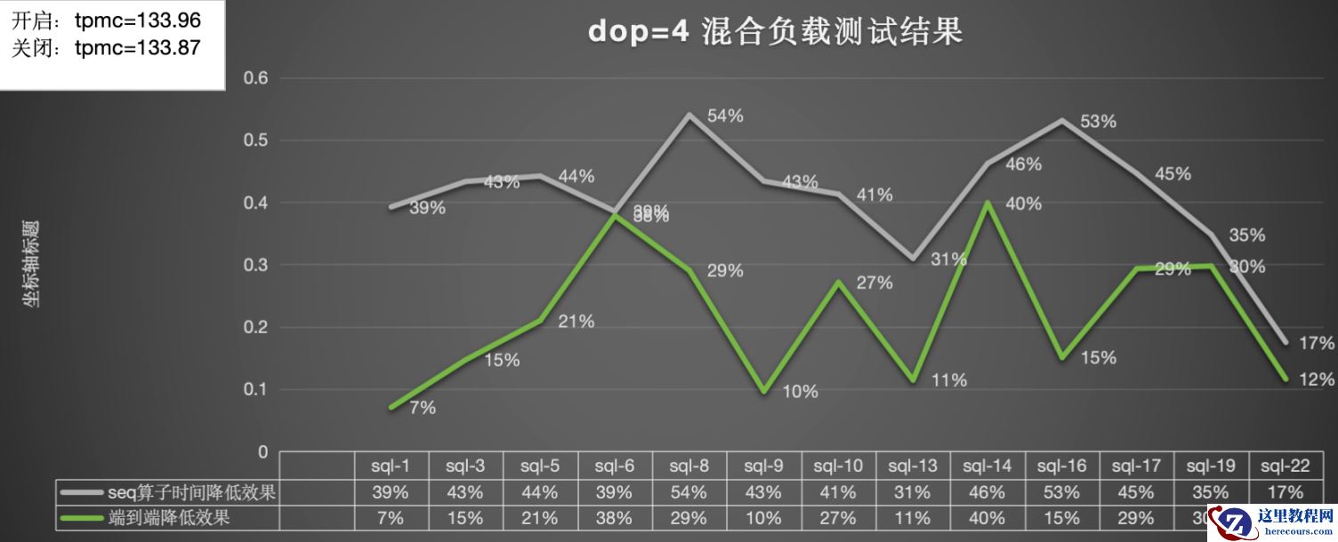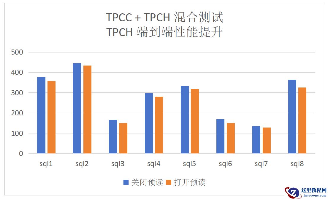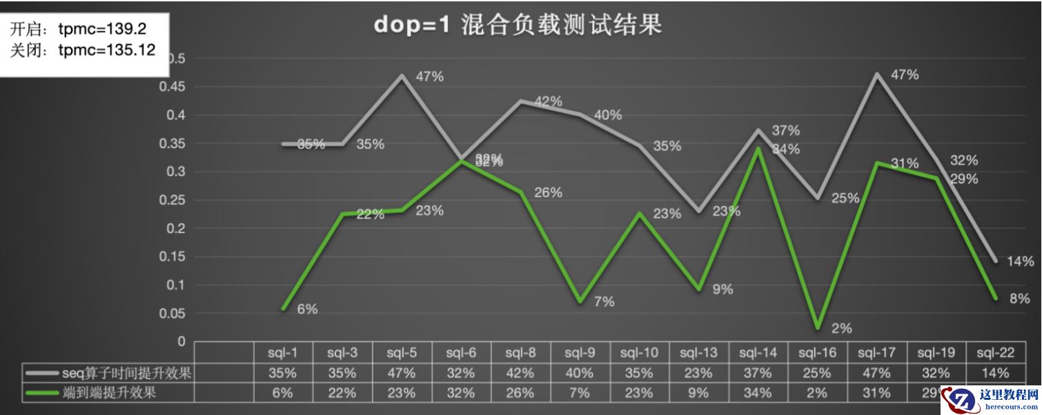 混合负载(tpcc+tpch)的情况下性能提升的结果和对TPMC的影响: