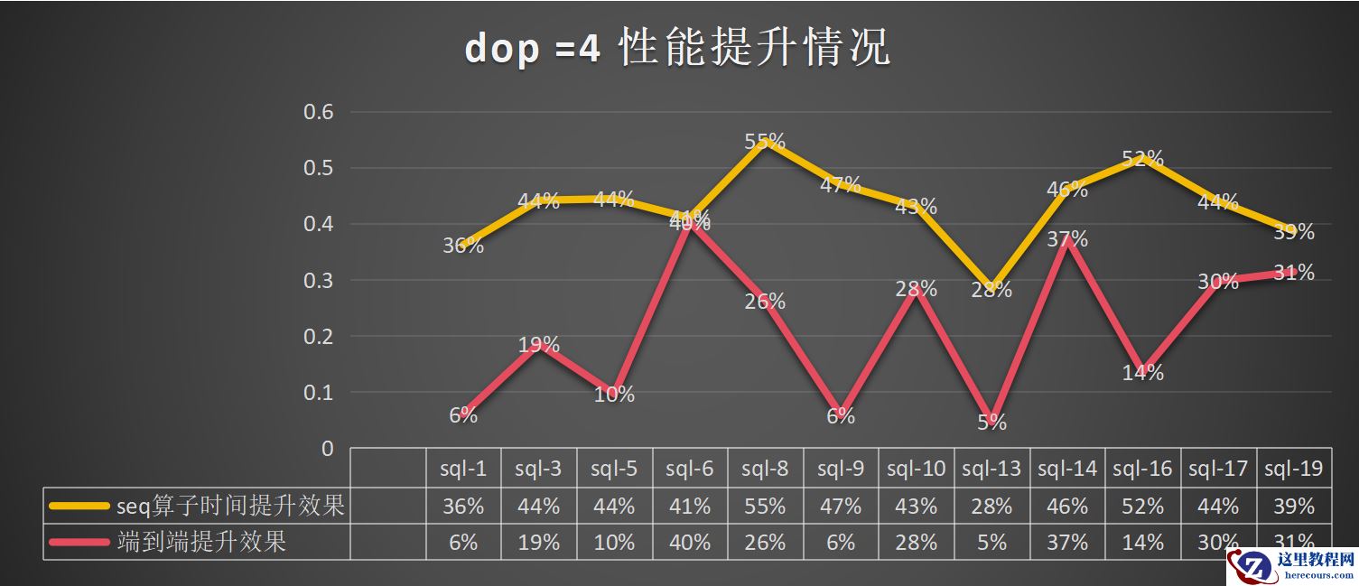 dop=4:总体算子提升为43%,端到端的提升为21%: