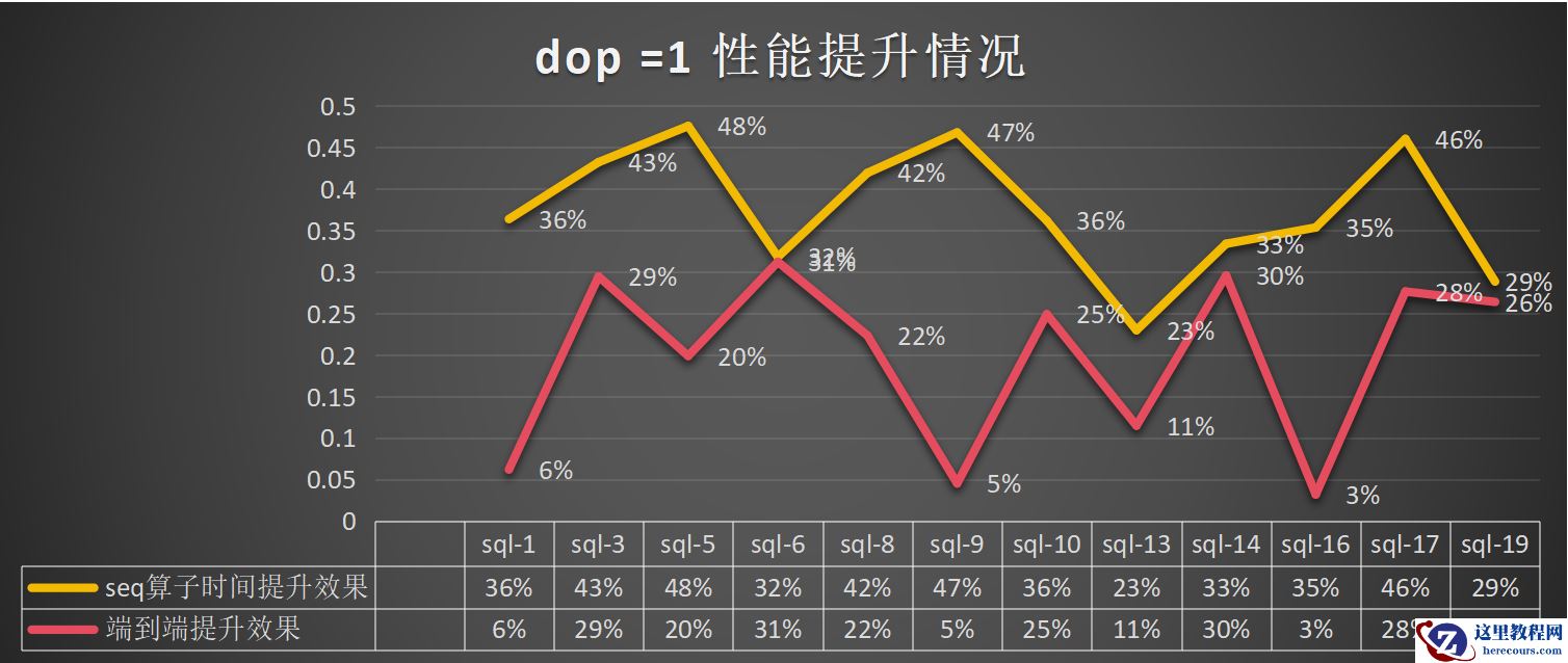dop=1:总体算子提升为41%,端到端的提升为19%: