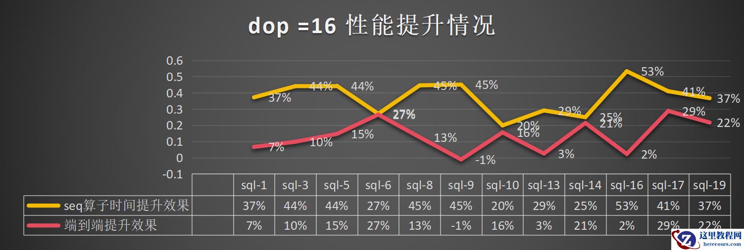 dop=16:总体算子提升为37%,端到端的提升为13%: