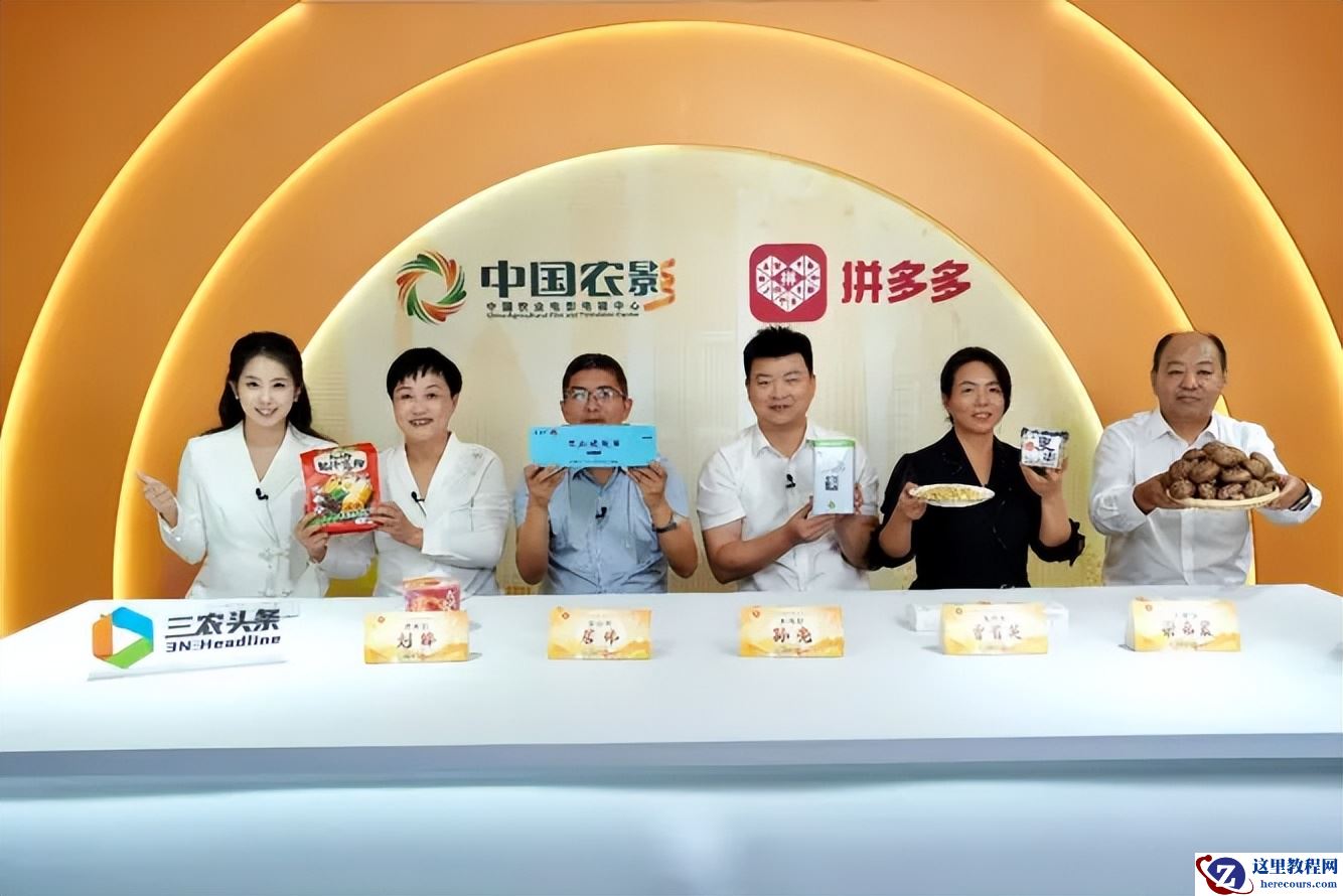 ▲5位乡村振兴重点帮扶县代表走进拼多多直播间,为当地特色农产品“代言”。陈卓▕摄