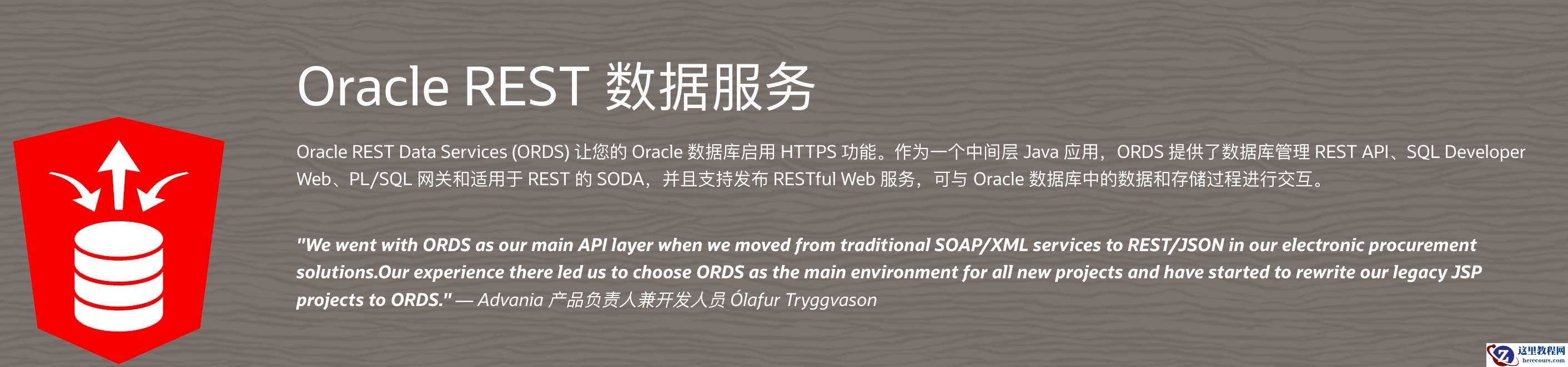 ORDS(Oracle REST 数据服务)是Oracle REST服务,它为以Oracle为中心的应用程序提供类似的标准化。它使具有SQL和其他数据库技能的开发人员能够构建对Oracle数据库的企业级数据访问PI。