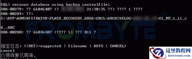 由于恢复数据库需要某天的归档日志,但是归档日志丢失,只能使用cancel参数进行不完全恢复。