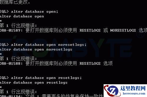 3、执行alter database open命令,打开数据库。