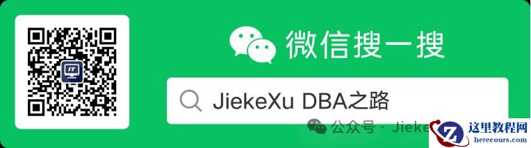 欢迎关注我公众号【JiekeXu DBA之路】,第一时间一起学习新知识!以下四个地址可以找到我,其他地址均属于盗版侵权爬取我的文章,而且代码格式、图片等均有错乱,不方便阅读,欢迎来我公众号或者墨天轮地址关注我,第一时间收获最新消息。