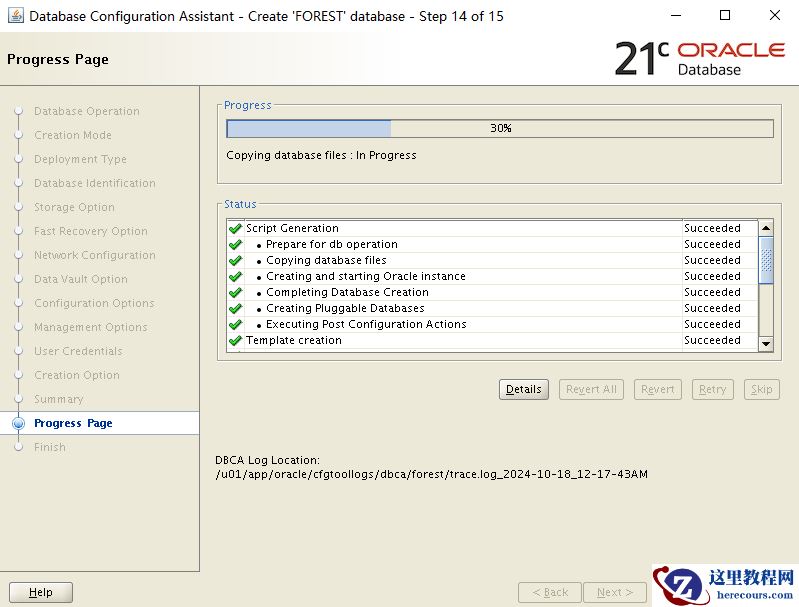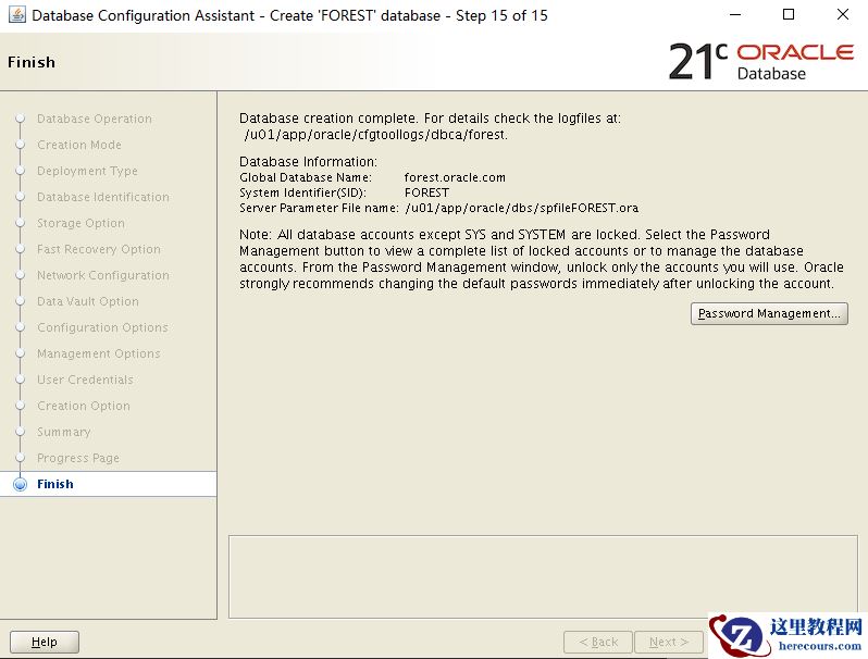 [oracle@forest ~]$ /u01/app/oracle/product/21.3.0/dbhome_1/bin/dbca