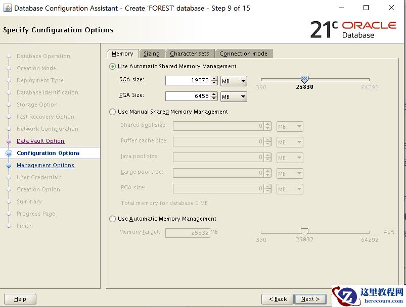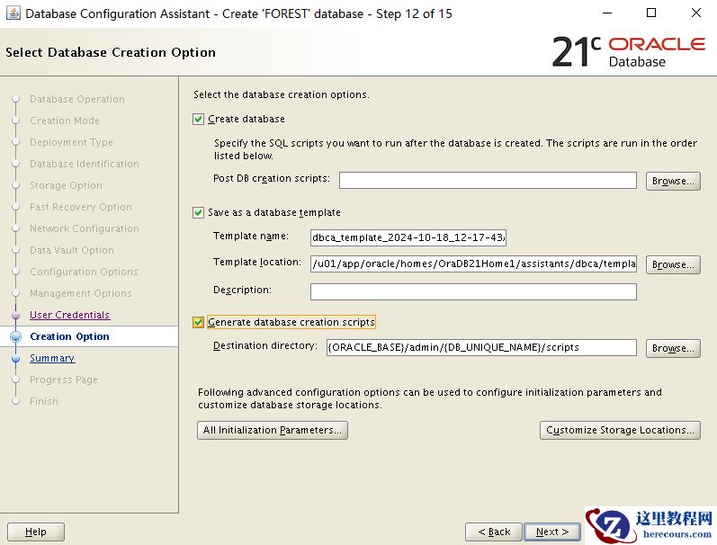 13、总结 全局设置 全局数据库名称:forest.oracle.com 实例名称:FOREST 数据库类型:单实例 是否创建为CDB:是 PDB前缀名称:FORESTPDB PDB数量:2 PDB是否使用本地undo表空间:是 内存管理方式:ASSM,自动共享内存管理方式 模版名称:通用
