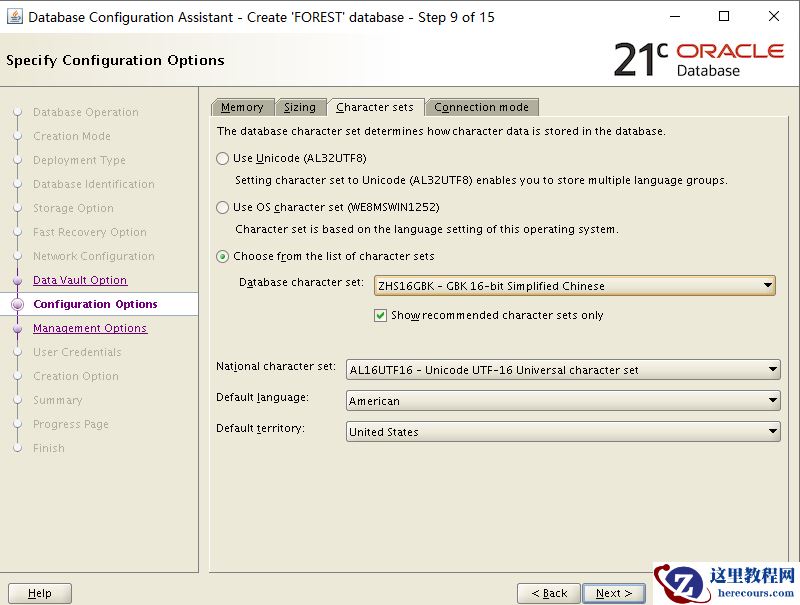 数据库字符集设置为ZHS16GBK