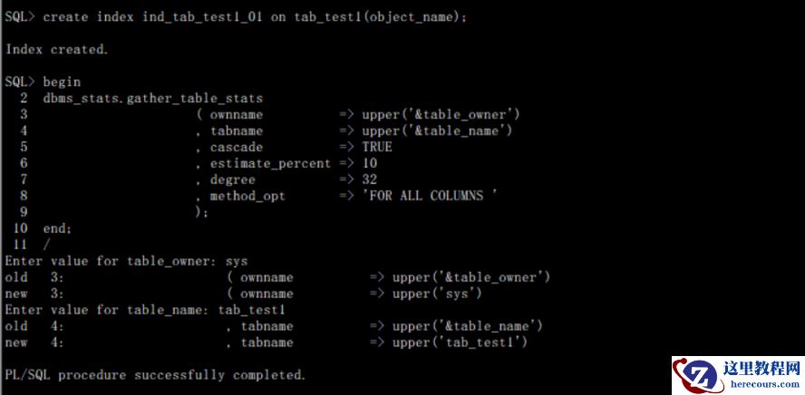 案例: 场景数据: SQL> create table tab_test1 as select * from dba_objects;