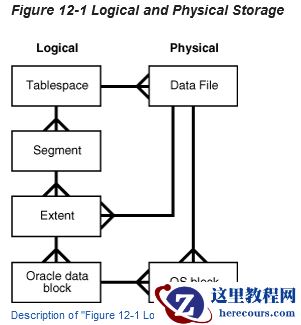 Oracle数据库为数据库中的所有数据分配逻辑空间。数据库空间分配的逻辑单元是data blocks, extents, segments和tablespace。在物理层面,数据存储在磁盘上的数据文件中。数据文件中的数据存储在操作系统块中。