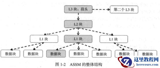 ASSM的整体结构是3层位图块+数据库,即4层树状结构。