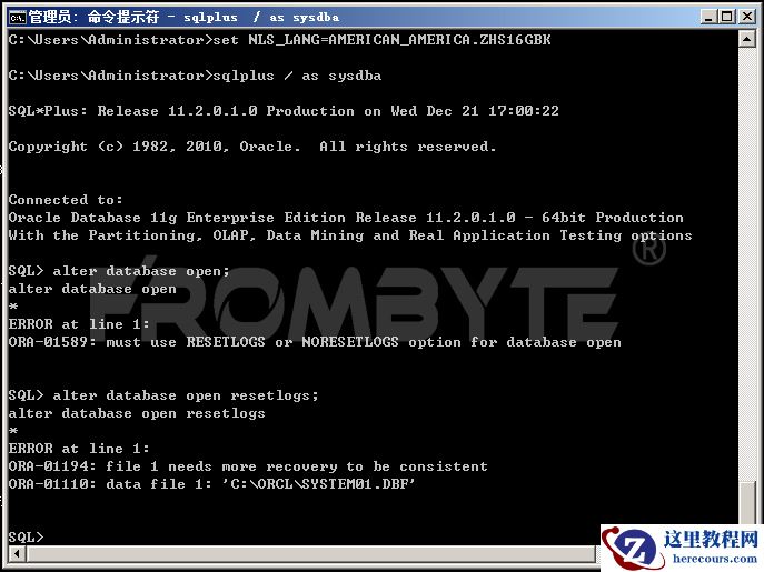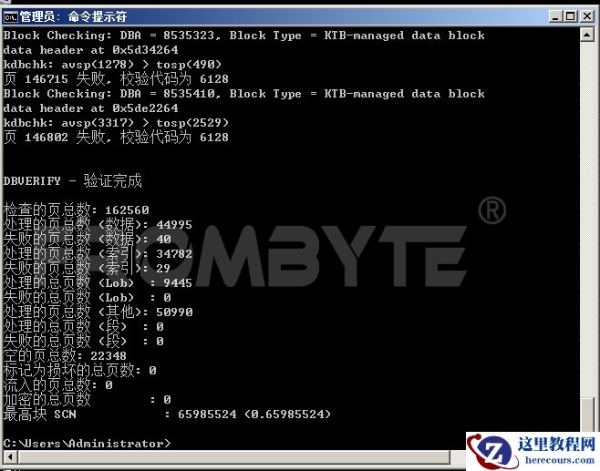 Oracle数据库检测与恢复:1、利用DBV检测数据库文件。