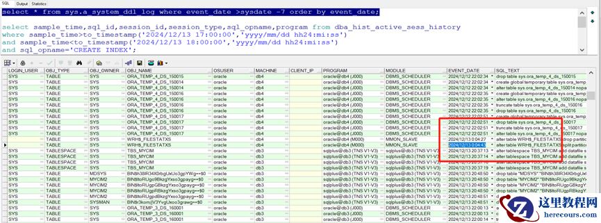 and sample_time<to_timestamp('2024/12/13 18:00:00','yyyy/mm/dd hh24:mi:ss')and sql_opname='CREATE INDEX';