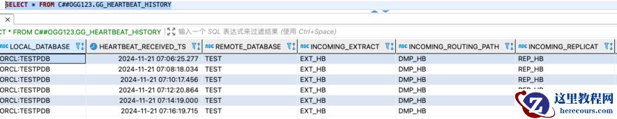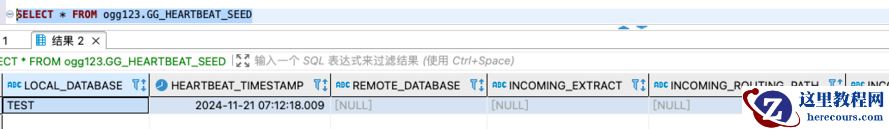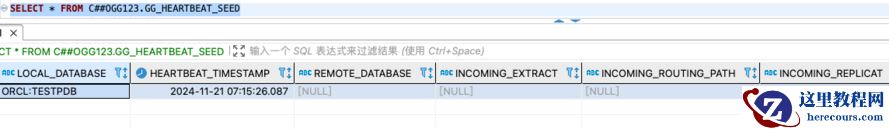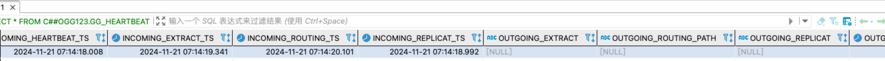 实际只有GG_HEARTBEAT_SEED表有数据,GG_HEARTBEAT和GG_HEARTBEAT_HISTORY表都是无数据的。(和12.2之前手工配置类似,源端只用到一张表)